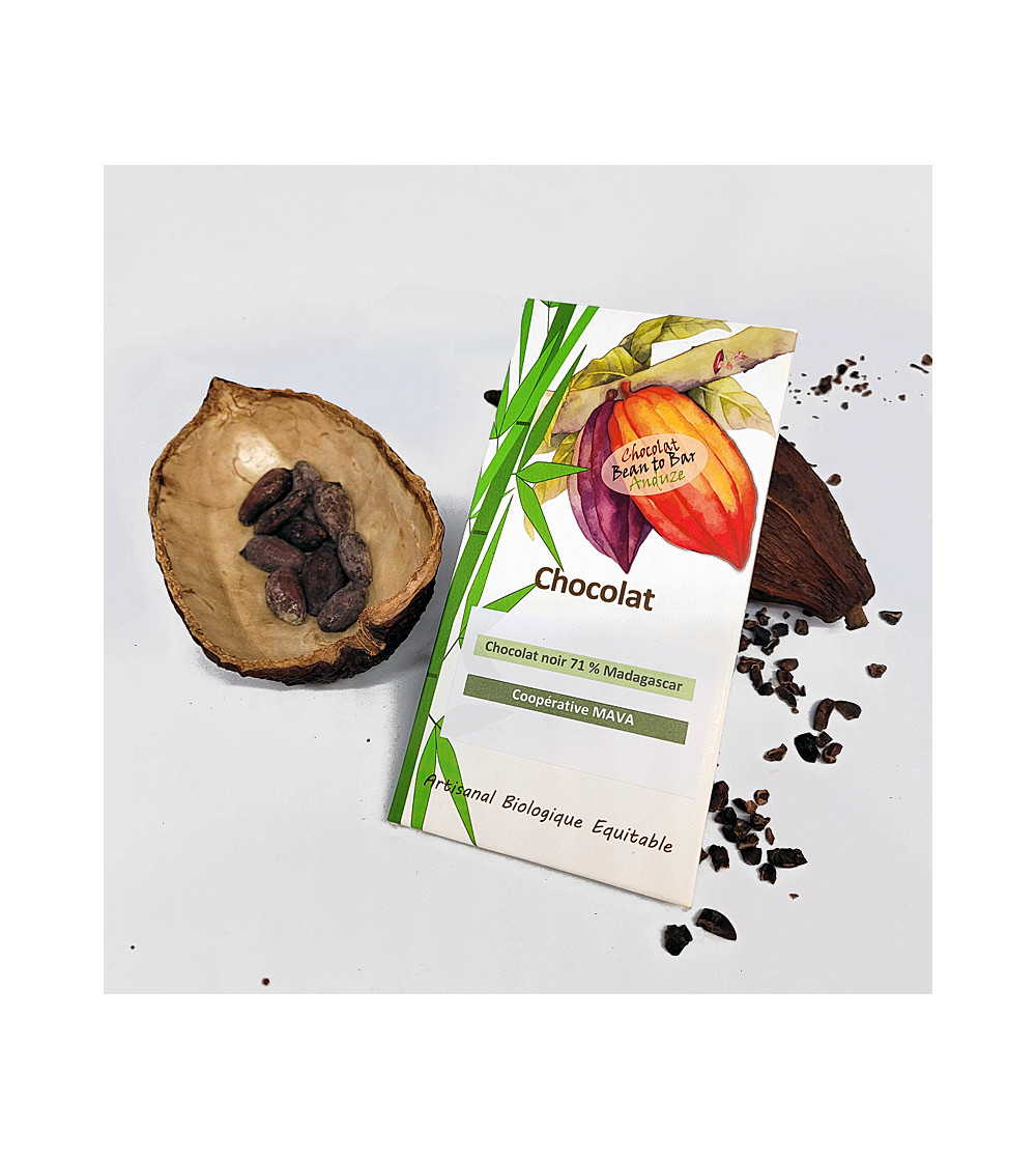 Dégustez ce chocolat 71% fabriqué avec les fèves de cacao bio de la coopérative Mava dans la vallée du Sambirano.