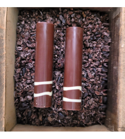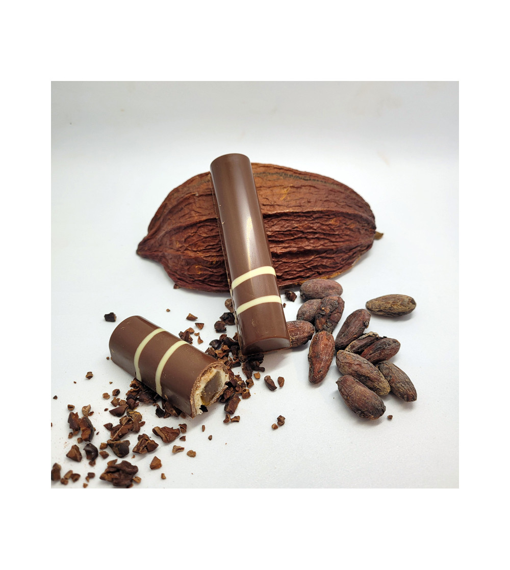 Pour un goûter ou un moment plaisir, ces deux barres gourmandes chocolat au lait Colombie 44% sont fourrée avec une pâte de noix de coco croustillante et un cœur aux fruits de la passion.