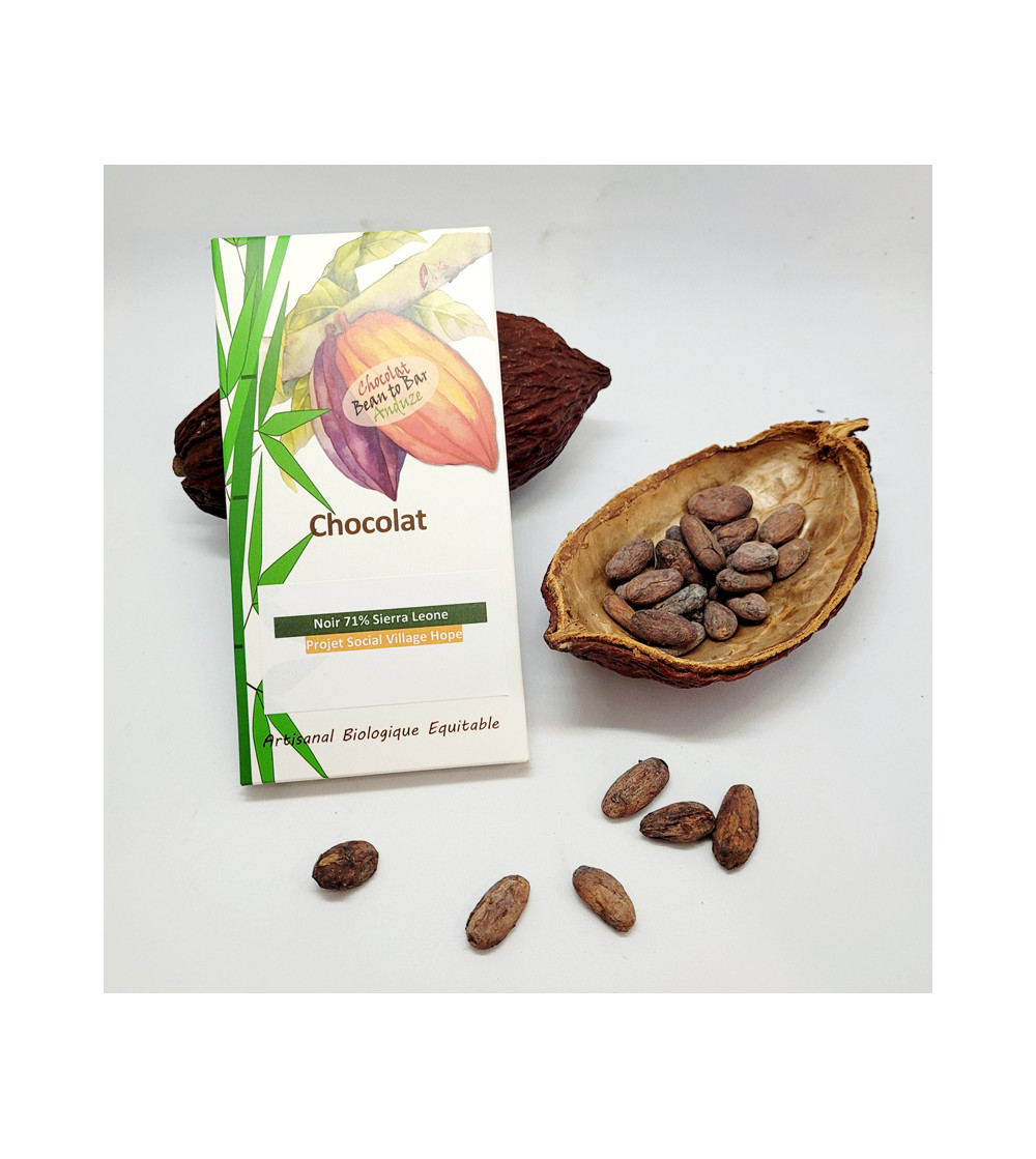 Dégustez ce chocolat 71% de Sierra Leone bio. Ces fèves de cacao fin sont produites en agriculture biologique.